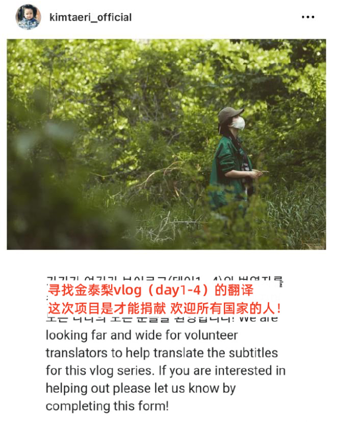 最近韩国演员金泰梨在ins上发文让各国粉丝无偿翻译自己的vlog,美其名曰“才能捐献”。