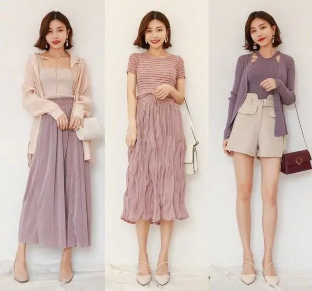 迷人甜美的红色调,能把女生温柔气质完美的展现出来。浅紫色有浪漫情怀,颜色相对浅,就不要搭配黑色的啦,最好选择白色或米白色系的。