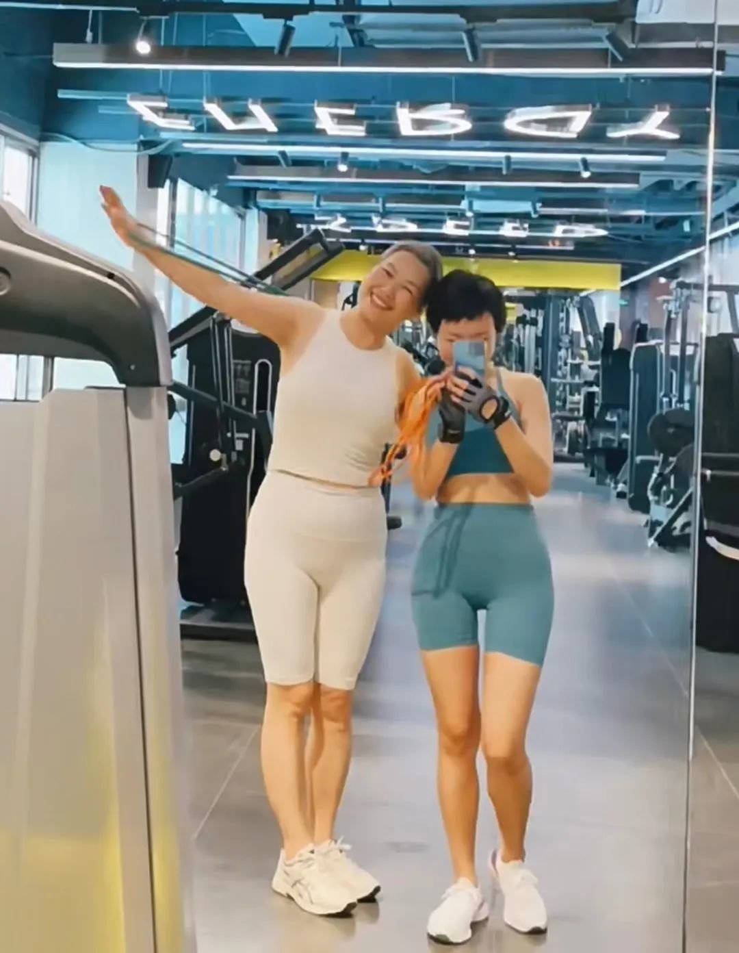 和女儿一起健身
