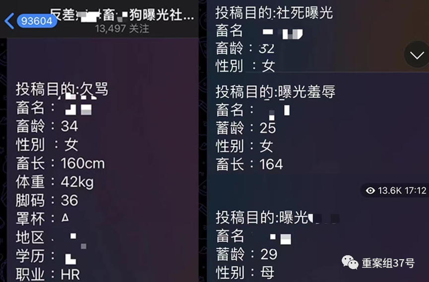 “反差”“曝光”“自毁”“社死”是这些群名里的高频词汇,其中的聊天内容也多为制作、公开女性的淫秽图像和隐私信息。除了图像外,不少女性的身高、体重、年龄等信息被公开,甚至还有家庭住址、社交媒体账号和身份证号。