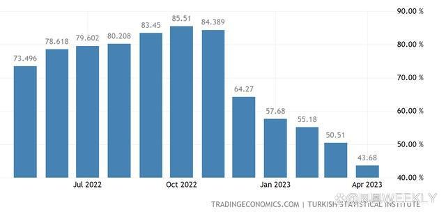 土耳其一年内的通胀率。