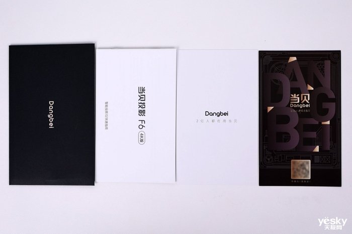 配件方面,当贝F6配有电源适配器、遥控器、电池、说明书等。