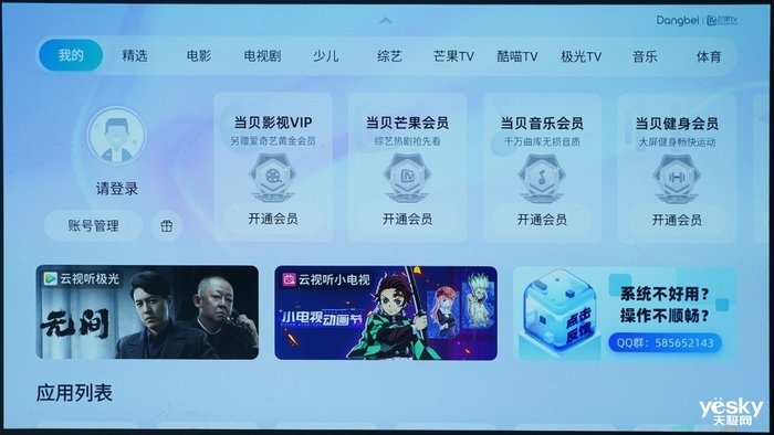 系统方面,当贝F6采用了全新的当贝OS 4.0系统,基于最新Android 12搭建,支持无广告快速开机、桌面自定义、动态视频壁纸、多任务操作、远程留言、智能优化内存、一键除尘、魔法同屏、语音操控、遥控器找回、不同的观影模式等功能操作。