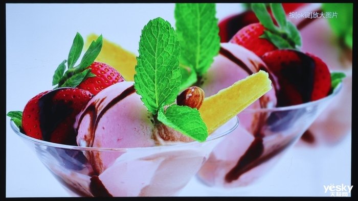 我们播放了一些测试样张,当贝F6呈现出来的色彩画质,不管是色彩范围、色彩饱和度、亮度、对比度,都让我们感到满意。