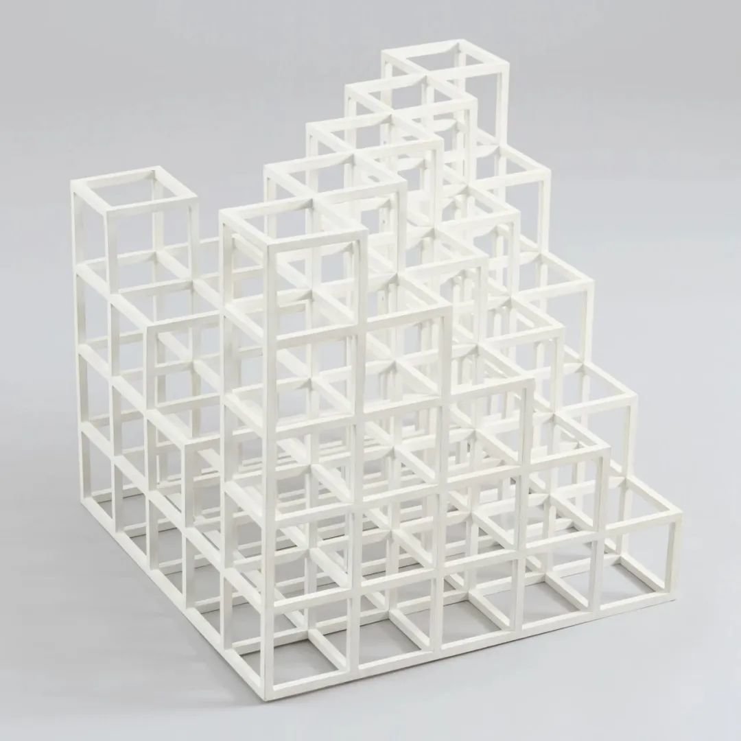 几何形的互相嵌套,仿佛就是对于极简主义艺术的图示化,无论是卡尔·安德烈、唐纳德·贾德,还是所罗门·索尔·勒维特,即工业化大生产中标准件的重复叠加。