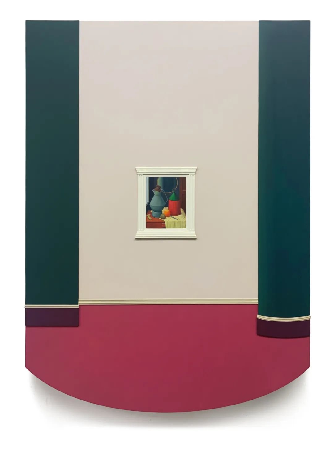 2017年之后,黄一山将关注点转向了博物馆空间,以及在其中展示的艺术作品(2017-2019)。他在画面中加强了浮雕感和材质性,使得室内的建筑装饰显得更突出和具体,模糊了绘画和浮雕的界线。在这一时期的作品中,虽然瓷砖或地砖的显性网格被逐渐削弱,但平行透视依然占主导地位,这使得网格系统被悄悄地隐匿于室内装饰的表象之下。