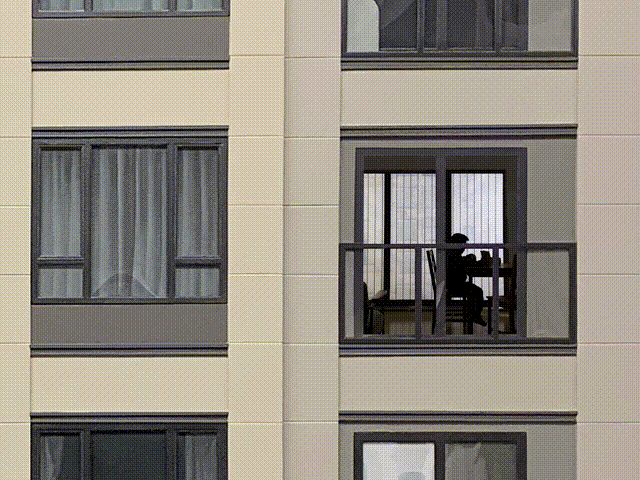 由于处于那无处不在的现代化网格系统之中,这些视频中的场景或者并非就如此像一个生活在前现代的维米尔,那种迷人、宁静且永恒的瞬间其实更接近于挣扎于现代性牢笼下孤寂的霍珀。在黄一山的《楼宇》系列中,在一个个日常被嵌入网格化的窗户中,运动的视频和绘画一起以一种现实主义的方式缅怀着我们不凡而又庸常的生活。