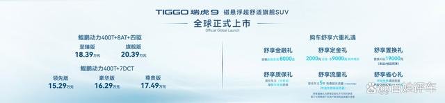 5月30日,奇瑞汽车重磅打造的TIGGO瑞虎9正式全球上市,共推出领先版、豪华版、尊贵版、至臻版、旗舰版5款车型,官方指导价15.29-20.39万元。针对购车用户特推出6重惊喜,为用户带来买无忧、用无忧、养无忧的全新价值体验。
