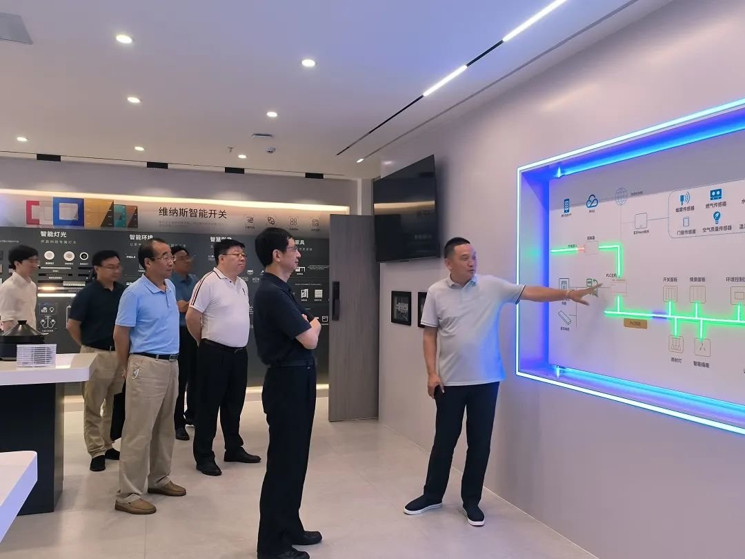 在荣电集团执行董事侯爱明的引导下,电子科技大学中山学院领导一行参观了荣电产品体验中心、智慧家居体验中心、亿健健康体验中心、科研中心等园区版块。
