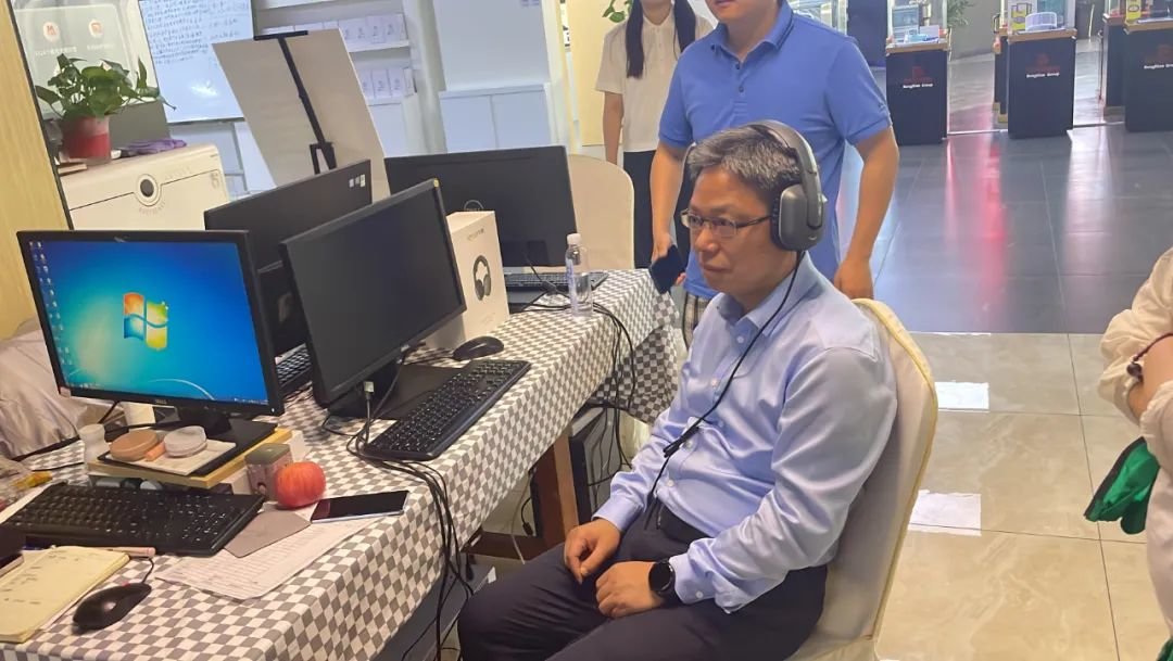在3U智慧生态产业中心,工作人员对公司产品进行了详细介绍,在介绍亚摩斯健康检测调理仪时,调研组一行对其产生了浓厚兴趣,并体验了调理仪的体检功能。