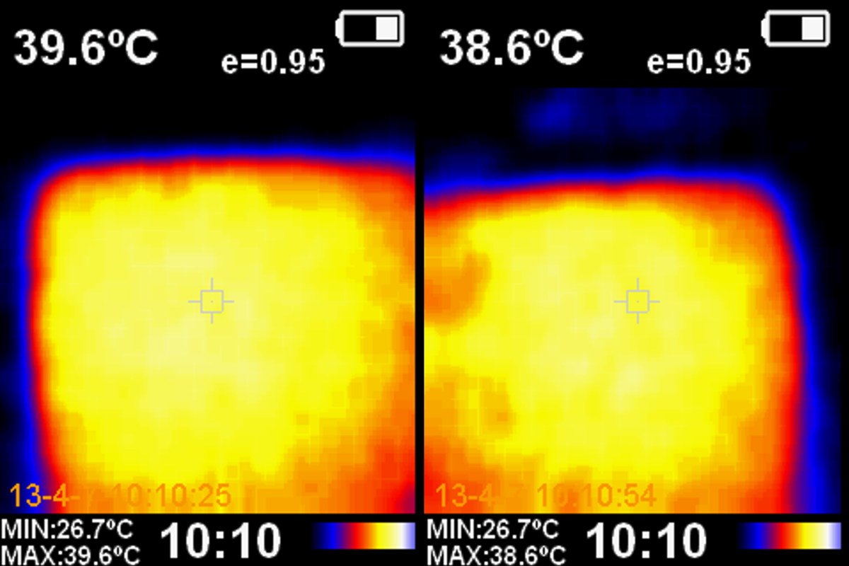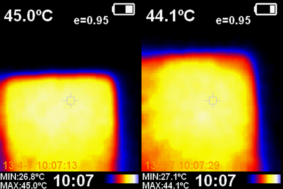 (半小时《原神》左机身正面温度,右机身背面温度)