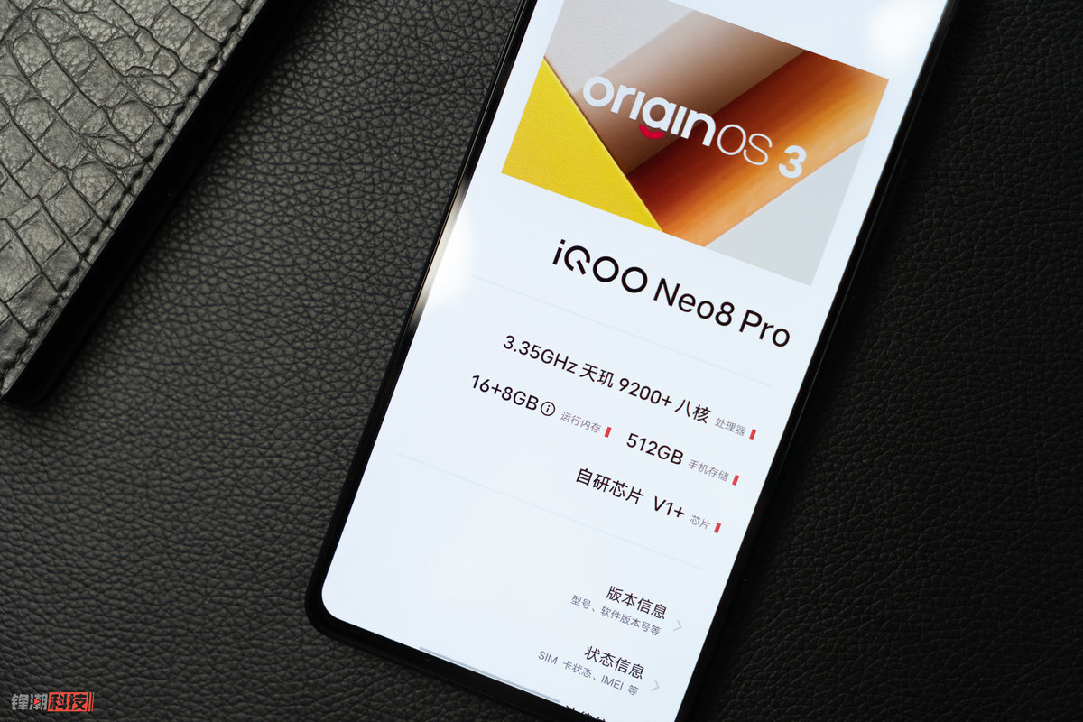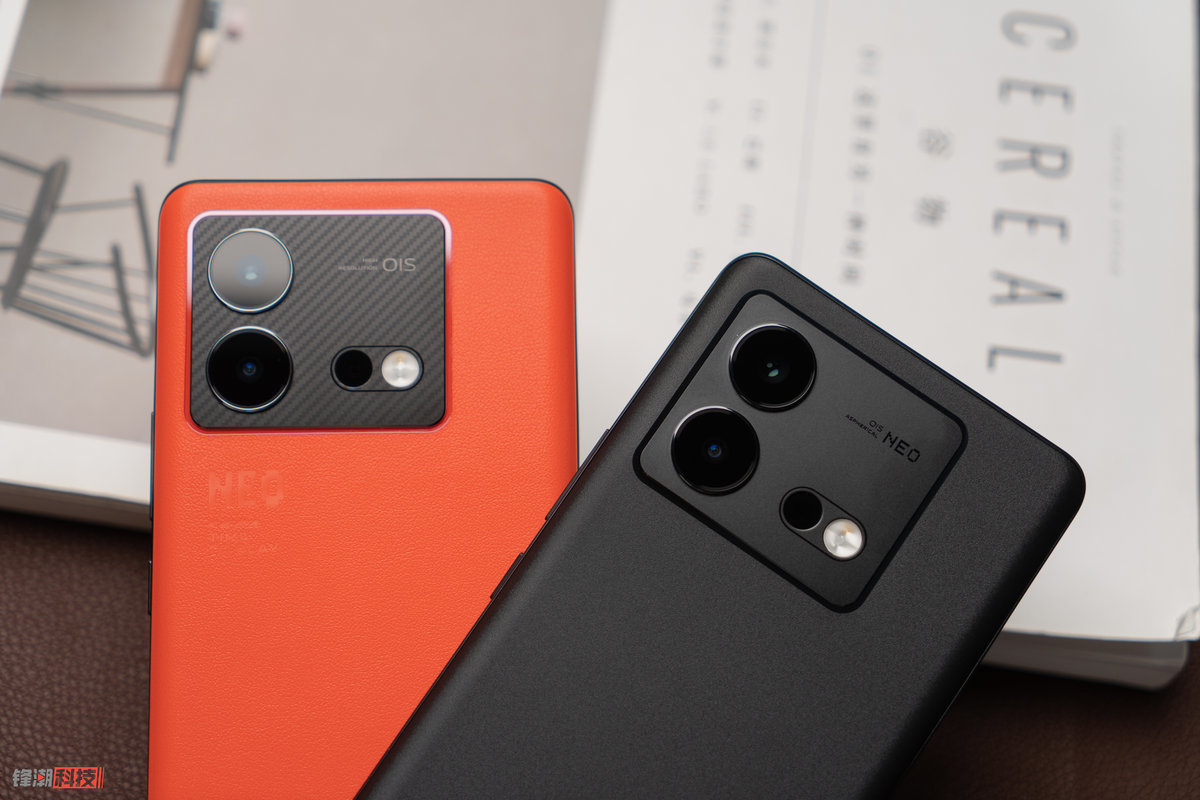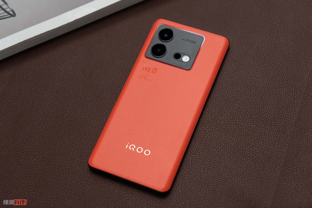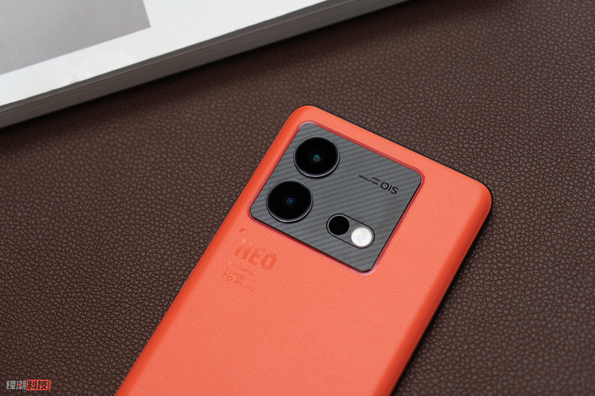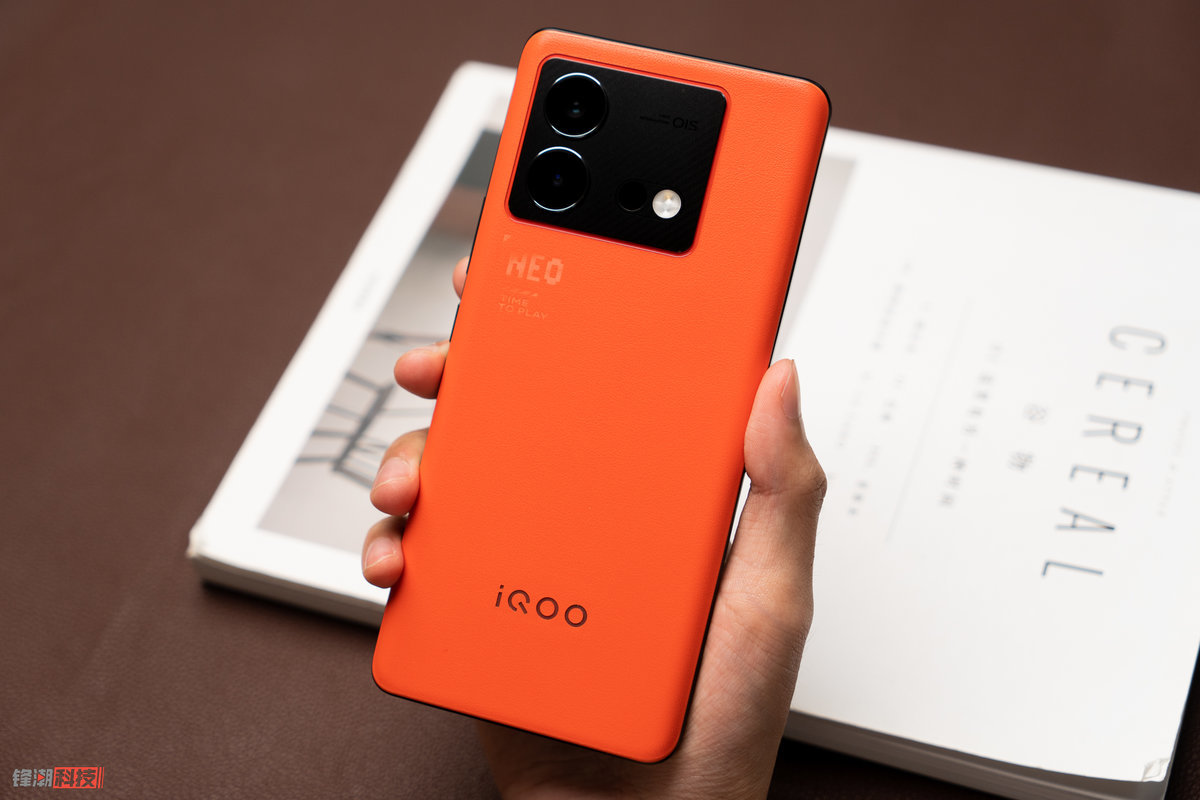 iQOO Neo8 Pro 的主打色「赛点」的机身后盖采用荔枝纹素皮材质,镜头模组的下方还有独家定制的「NEO」和「Time to Play」字符,既能展现出热血酷玩的品牌风格,又能提升手机的辨识度,机身重量也仅有 192.3g(其他两个配色为 196.9g),握持手感也很不错。