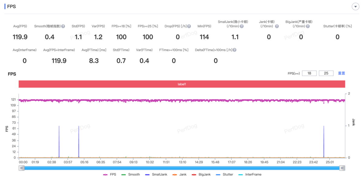 首先是《王者荣耀》,将画质设置为 120 帧+极致画质,半小时测试过后,去除中间换局时的掉帧,平均帧率为 119.9 帧,战斗全程基本都是满帧运行,大型团战也没有出现卡顿情况,说明较低负载的游戏 iQOO Neo8 Pro 还是游刃有余的。