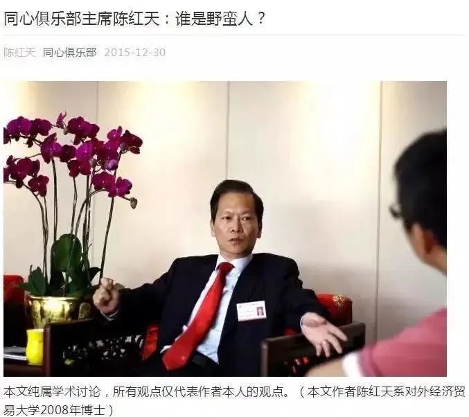 2015年“宝万之争”,陈红天发表过署名文章《谁是野蛮人?》一文,公开声援姚振华。