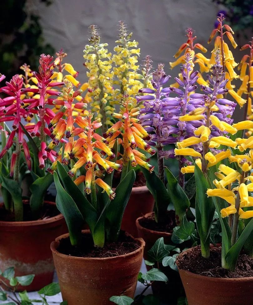 还有一些比较知名的立金花园艺品种,包括三色立金花(四色立金花Lachenalia quadricolor),它的花色比较艳丽,花色斑斓多彩,养护方法都是一样的。