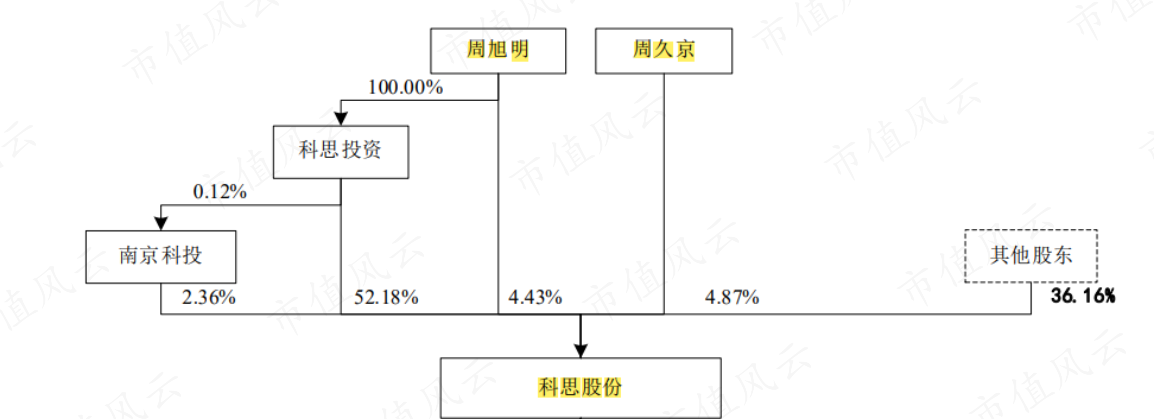 公司家族企业特征明显,控股股东为南京科思投资发展有限公司,由周旭明100%持有,而周久京及周旭明父子是公司实控人。