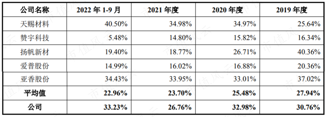 扬帆新材(300637.SZ)主要从事光引发剂和中间体业务,下游主要是医药、农药与染料领域,可比性不强,且这家公司规模较小,2022年营收不到8亿;