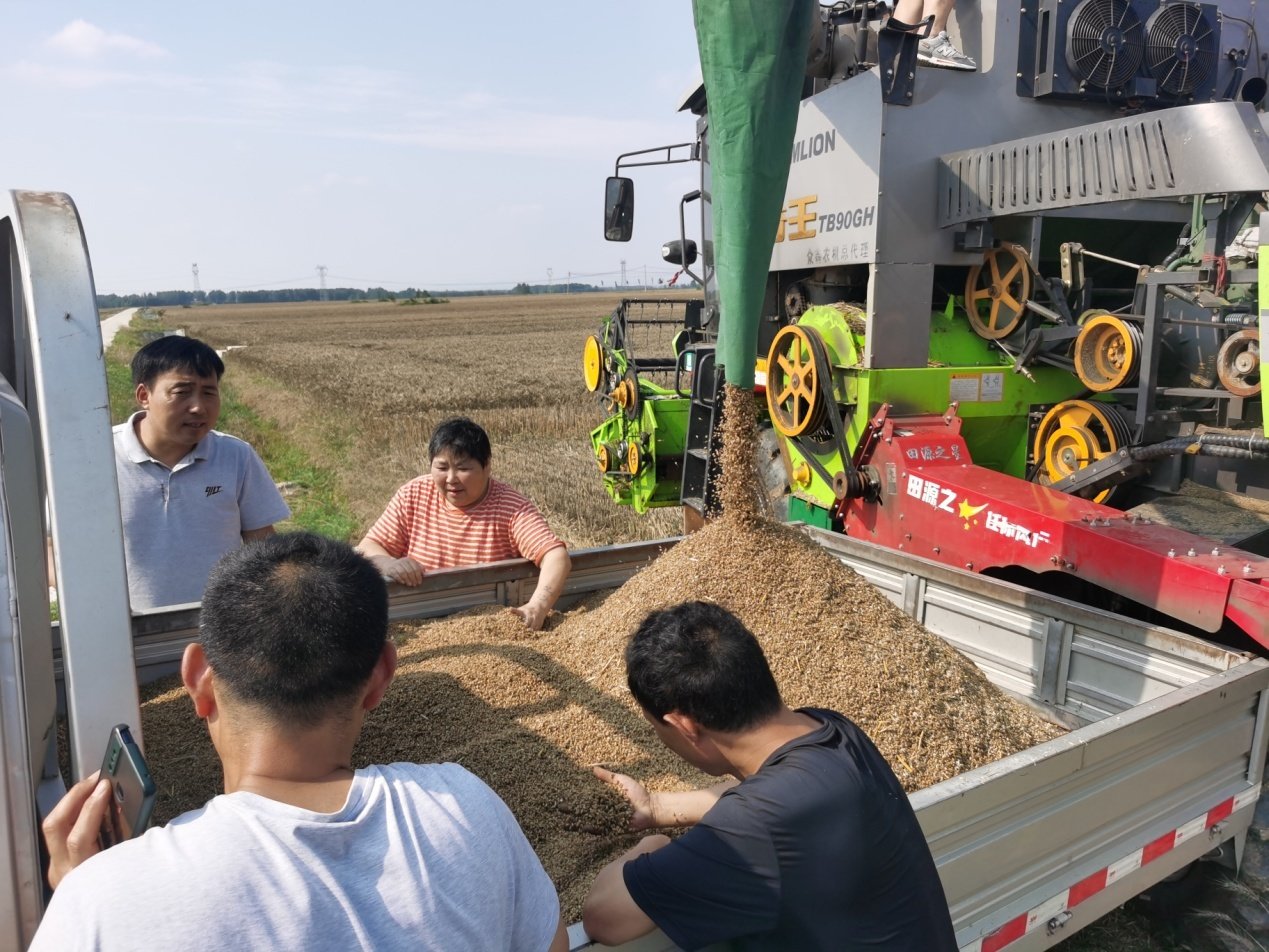 5月30日下午天一放晴,收割机就进入条件许可的麦田收割,当天收割麦地50多亩,麦子5万余斤。