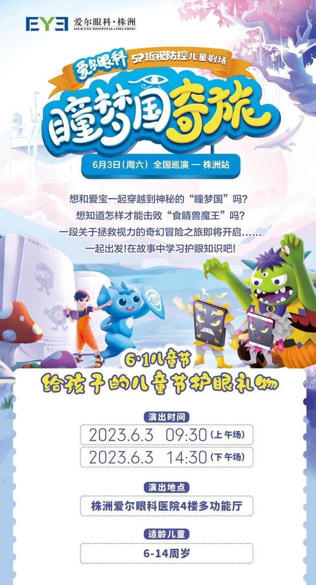 不知道周末带孩子去哪儿玩?还为孩子的近视管理而发愁?如何让孩子在玩耍中学到保护眼睛的科学方法?6月3日(本周六)《瞳梦国奇旅》·株洲站大型近视防控科普舞台剧正式开演!