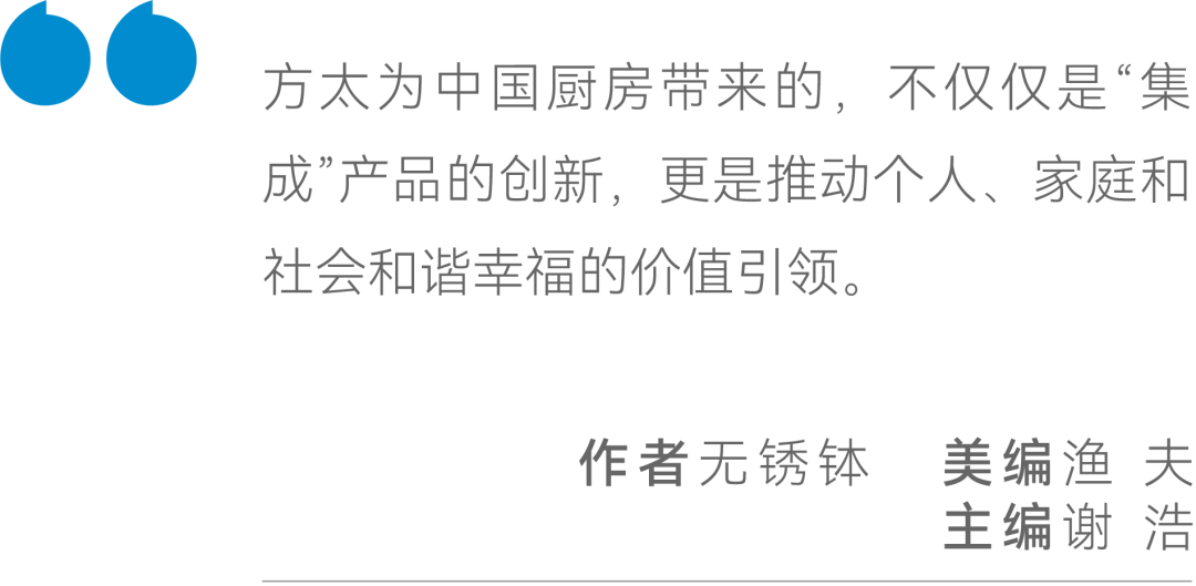 从这个角度来说,方太为中国厨房带来的,不仅仅是“集成”产品的创新,更是推动个人、家庭和社会的和谐幸福的价值引领。