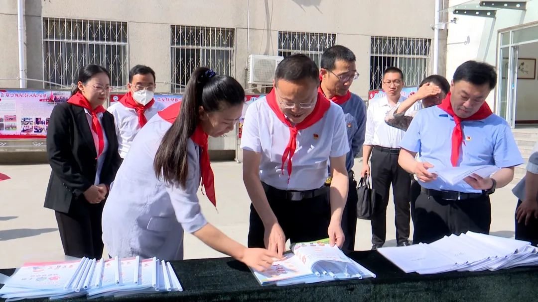 上午8点30分,孙奇宏一行来到莘县实验小学,看到县领导到来,实验小学的少先队员代表兴奋地迎上前,为这些“大朋友”系上鲜艳的红领巾,致以少先队队礼。随后少先队小讲解员分别介绍了他们组织开展的少先队工作活动情况。