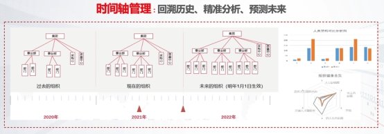 据介绍,基于用友BIP平台的多维组织应用架构,从纵向组织架构维度,多维组织树帮助企业协调刚性组织架构和组织灵动性需求的矛盾,与权限和流程等融合,提高企业围绕业务的组织变化能力;从横向时间维度,支持基于时间轴进行组织创建、变更,追溯过去、模拟未来,帮助企业全面掌握组织、人员现状及变化趋势,为各类人力资源管理和企业经营决策提供有力支撑。