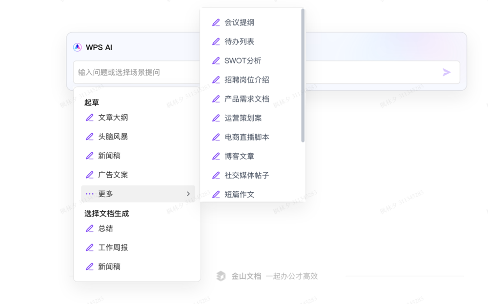 WPS作为协同办公软件,Word、PPT、Excel是必不可少的组件,如今在WPS AI的加持下,无疑是直接加装升级buff,不仅可以帮助用户打开撰写思路,还能在提高撰稿效率的同时,取代部分重复性高,容错率低的简单案头工作。