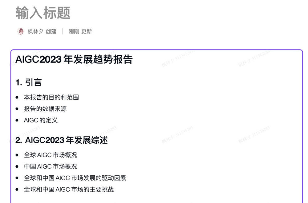只提供“目录”的大纲,不是好大纲。在接下来的对话交互中,让其填充文章大纲中的内容。