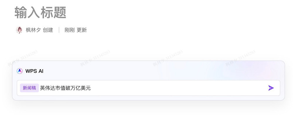 打开金山文档网页,新建“轻文档”后,点击“WPS AI”图标就能触发AI功能。