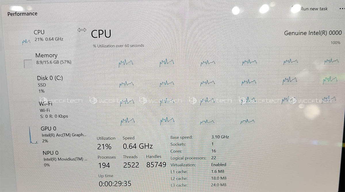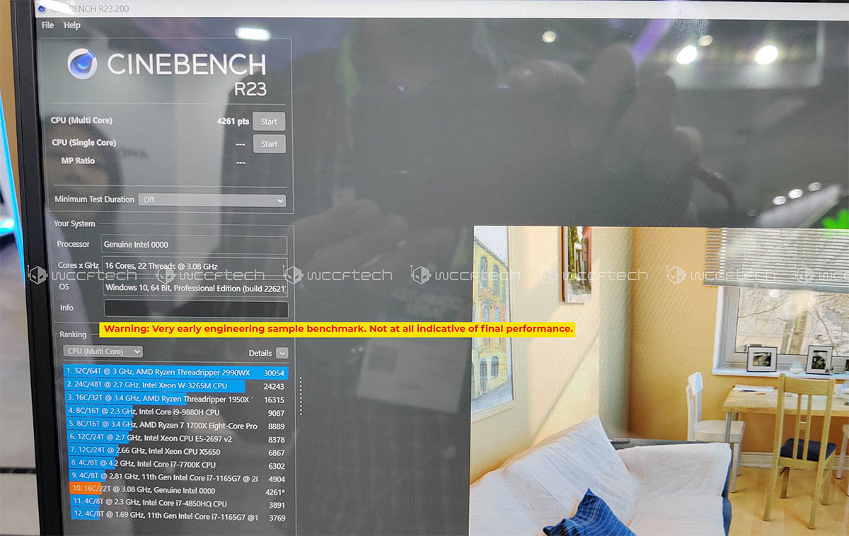 这颗Meteor Lake-P早期样品的Cinebench R23多线程得分为4261,但需要注意的是这台样品是没有插电的,所以性能肯定会有影响。
