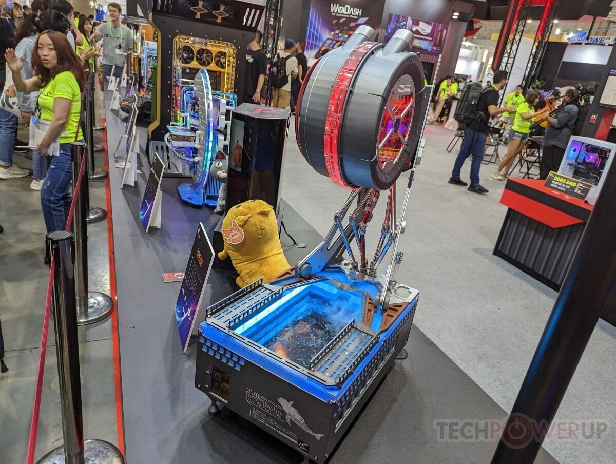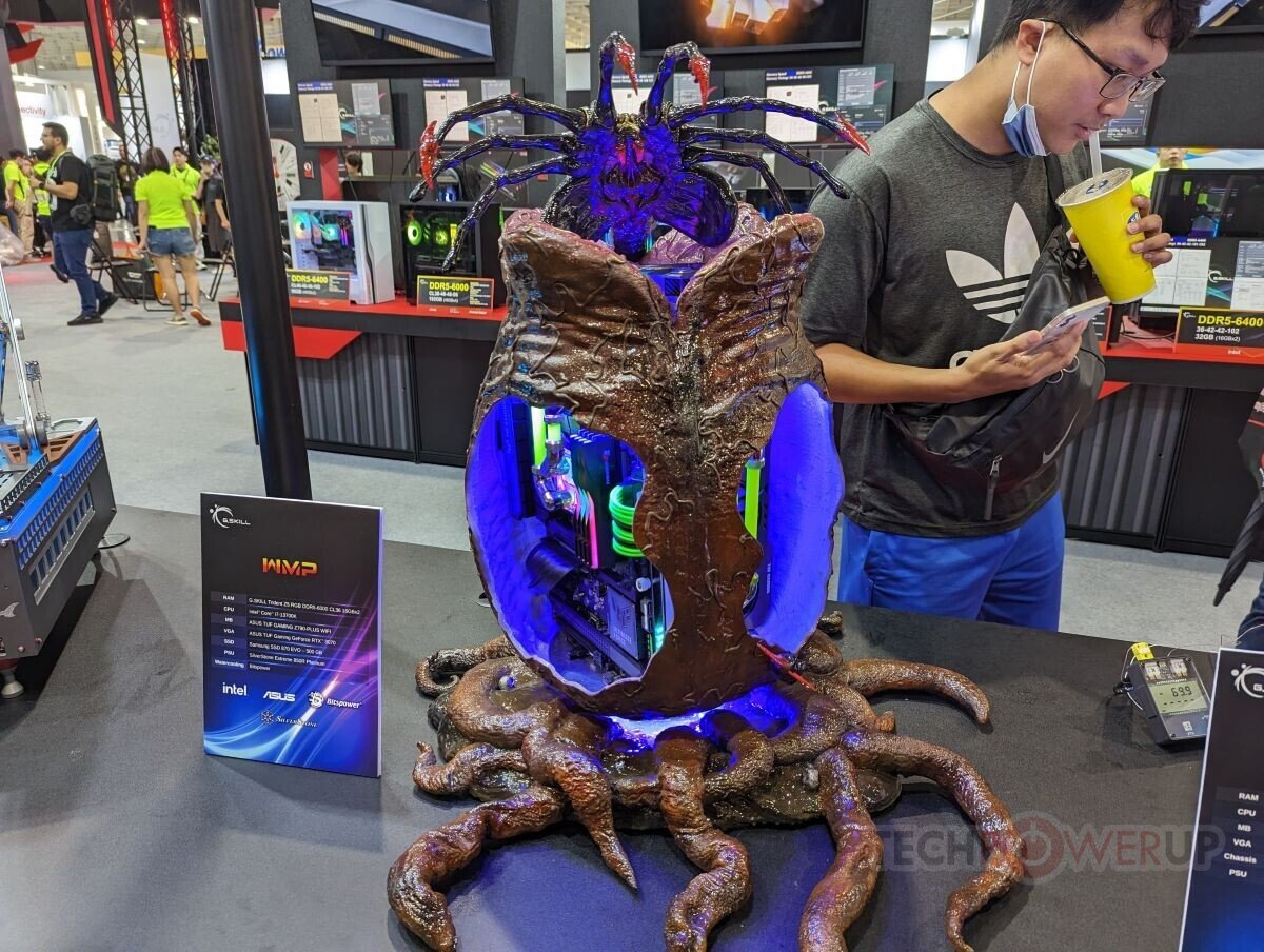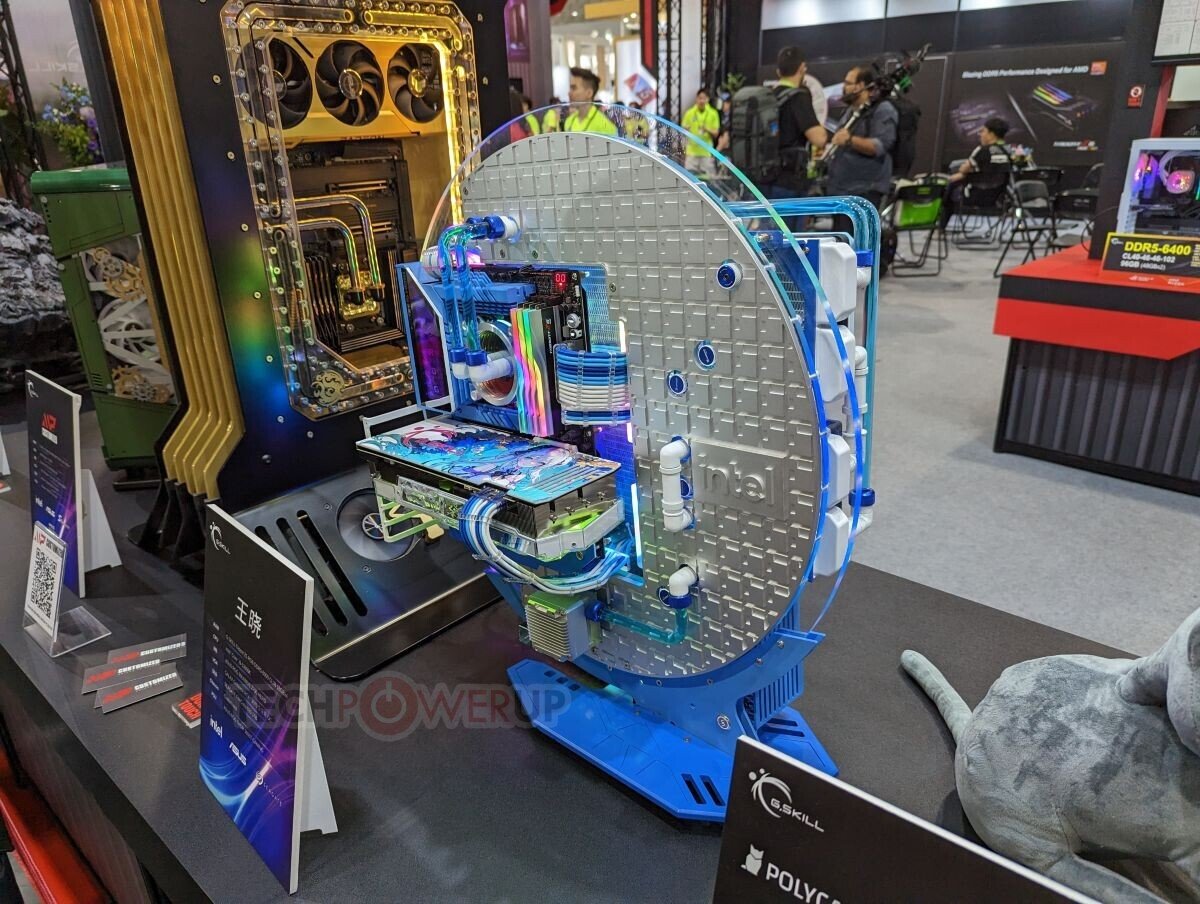 此外,芝奇在现场放置了许多主题MOD,吸引了不少人的目光。其中一个平台采用了英特尔Xeon W9-3495X处理器和W790主板搭建,装入了8条48GB的DDR5-6000内存,总容量达到了384GB,时序为CL30-39-39-96。