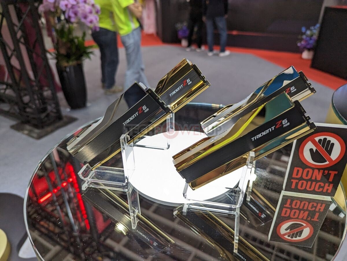 据TechPowerup报道,芝奇在Computex 2023上展示了其最快的DDR5内存,其中包括了单条容量为24GB的从产品,频率达到了8800 MHz。芝奇还在现场对DDR5-8000(时序为CL40-48-48-128)进行了超频,提升至DDR5-8800。