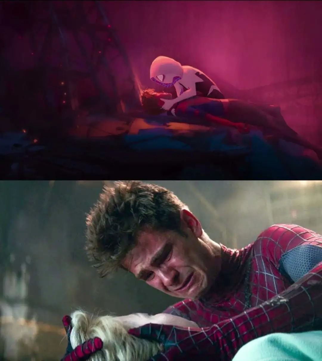 格温蜘蛛的回忆杀,致敬了《超凡蜘蛛侠2》悲剧名场面。