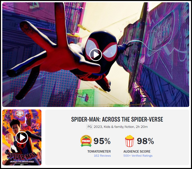 MTC媒体评分87/100,创下《蜘蛛侠》电影最高评分,获得必看认证。