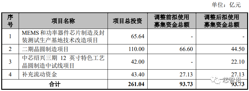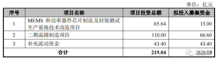 在此前的招股书中,中芯集成拟募资125亿元,将投向MEMS和功率器件芯片制造及封装测试生产基地技术改造项目;二期晶圆制造项目;补充流动资金。