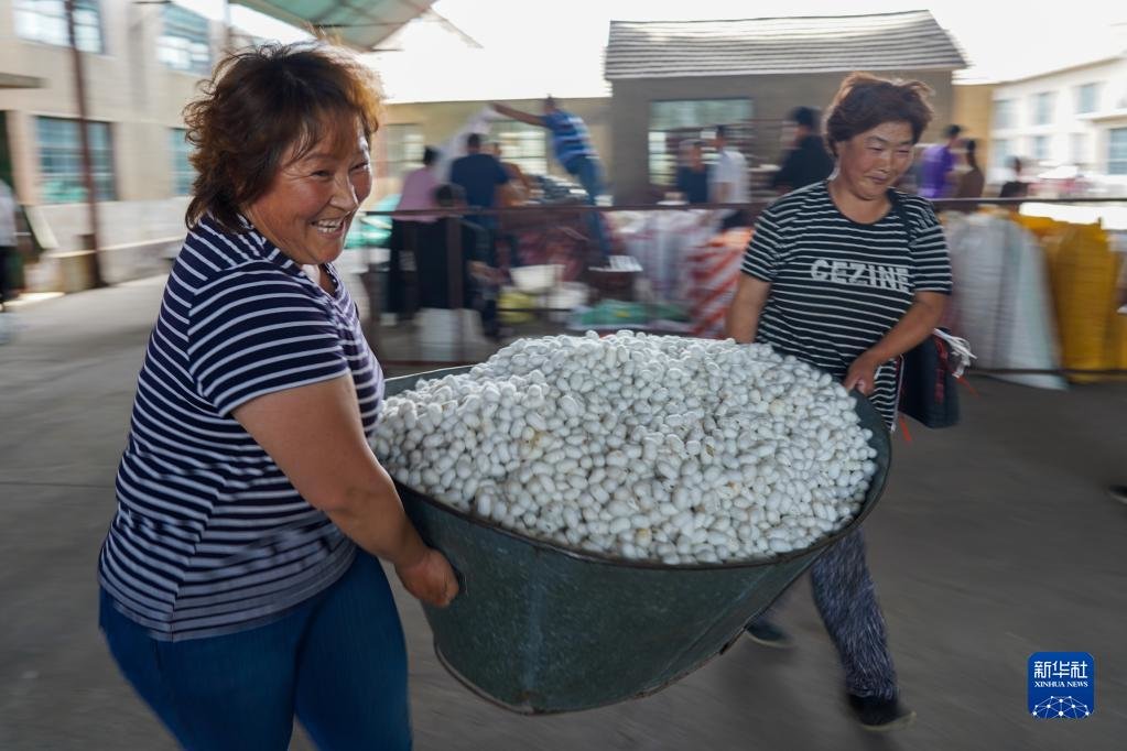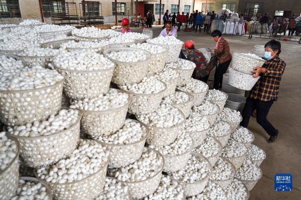 正值蚕茧收获时节,山东省泰安市岱岳区祝阳镇春季蚕茧喜获丰收,蚕农抢抓农时摘茧、售茧。