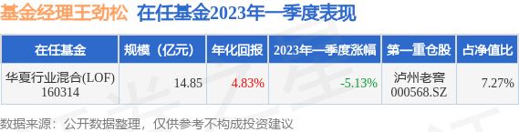 截止2023年一季度末,基金经理王劲松管理的华夏行业混合(LOF)(160314)季度净值跌5.13%。