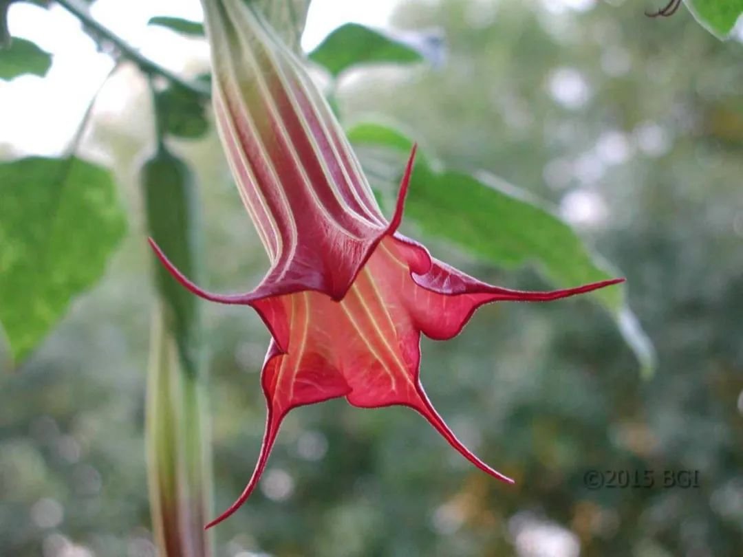 还有一点,大家并不用担心这些木本曼陀罗会蔓延,它已经被世界自然保护联盟,红色名录列为野外灭绝,我们能看到的,都是只有人工栽培的,即便是栽培中逸生出来的,也是极少的。这可能和它的授粉昆虫有关系,它主要是依靠夜蛾或蜂鸟授粉的,我国野外根本就没有蜂鸟。