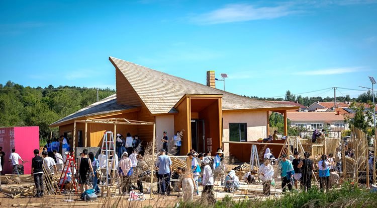 异形坡顶、草木风格,原木结构的友好村生态智慧实验室与友好村的乡野风情巧妙地融合在一起。据介绍,友好村生态智慧实验室的设计充分体现了具有高识别度的东北传统民居空间、建造和地方材料要素,以及应对寒地气候和灾害发生的建造原则,也体现了低成本低技术的可持续建造理念。最终的建筑体量融合了建筑与平台景观,协调了建筑的多个界面,最大限度实现了整体建筑体量与局部建造展示的有机统一。