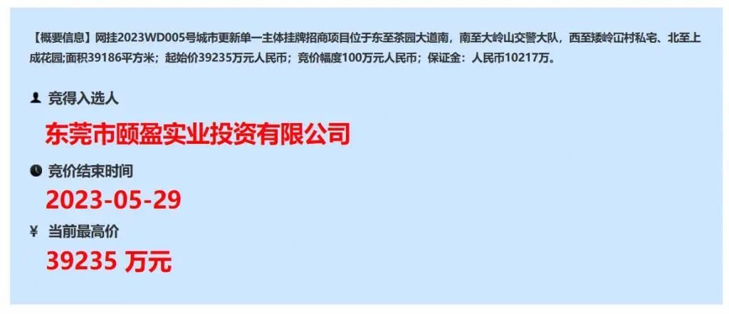 5月29日,颐盈实业以3.92亿元总价,拿下大岭山矮岭冚村旧改地块。规则交替时的落锤者还有海德集团,今年4月以16.7亿摘得东莞年内首个旧改。此外,5月22日,长盈房地产以4.7亿元竞得东莞道滘镇蔡白南岛旧改地块。