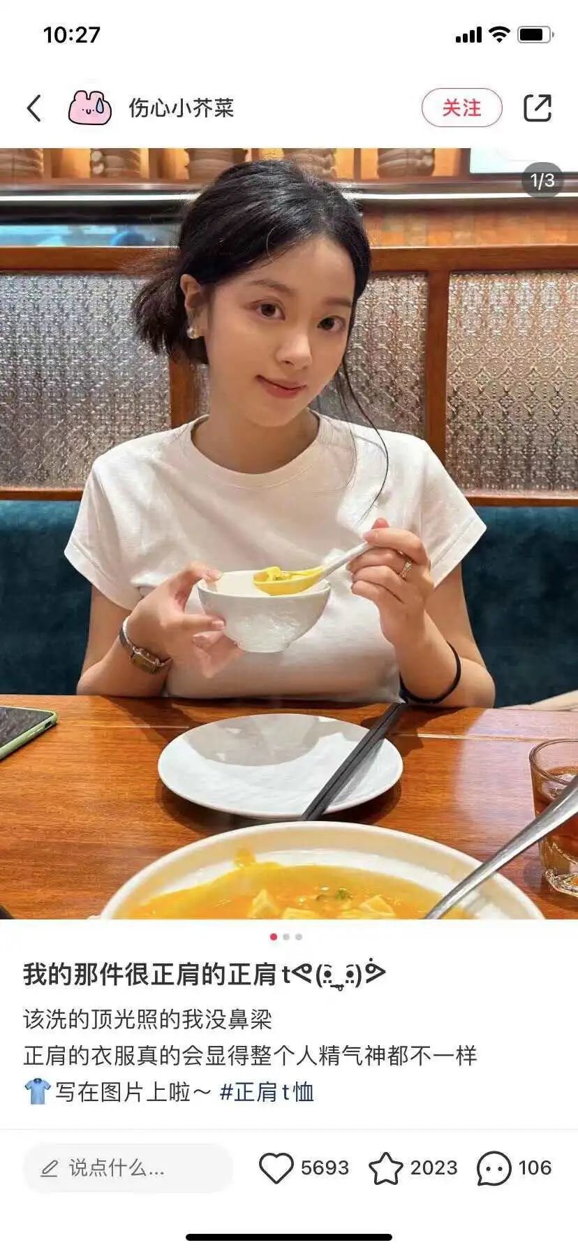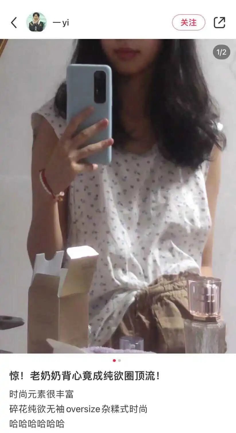 配合正肩T恤的出现,小红书上最近流行着一个话题——“成为美女第一步,扔掉你的宽松t”。二者搭配食用,倒是很符合小红书的调调。