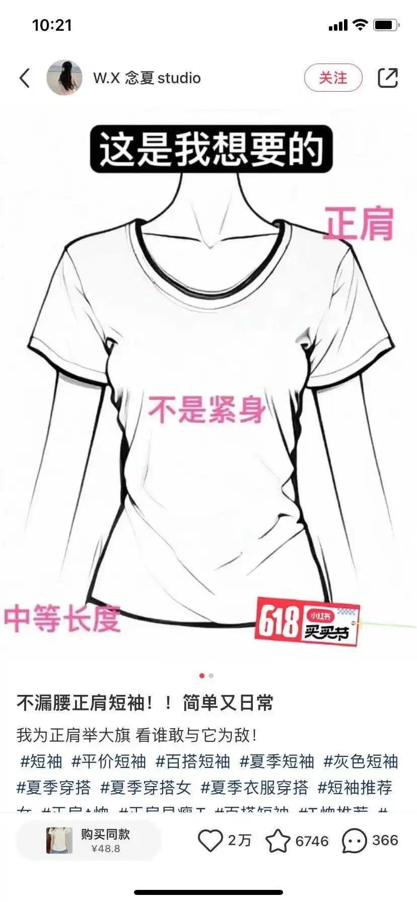 从小红书等社交平台上的总结来看,“正肩T恤”寄托了全村的希望:显瘦、收腰,最重要是穿上最好肩膀比量角器画出来的还直。