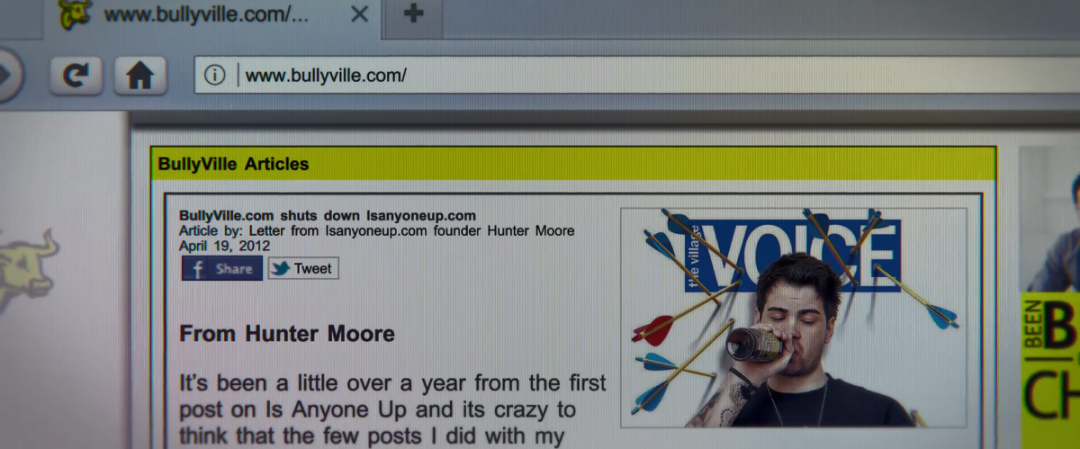 亨特·摩尔害怕坐牢,得知这个情况后一时心慌,遂接受了詹姆斯提出的方案——把网站卖给他,让网站直接导向他的反霸凌网。