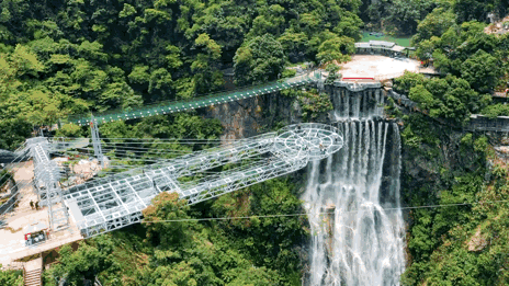 或是去牛鱼嘴体验一把网红玻璃漂流,长达1780米的滑道,悬在10多米的高空中,本身就是一道风景线。皮艇随着水流冲刺而下,每每到达转弯处,便会来一次激情漂移,让人心惊又肉跳。