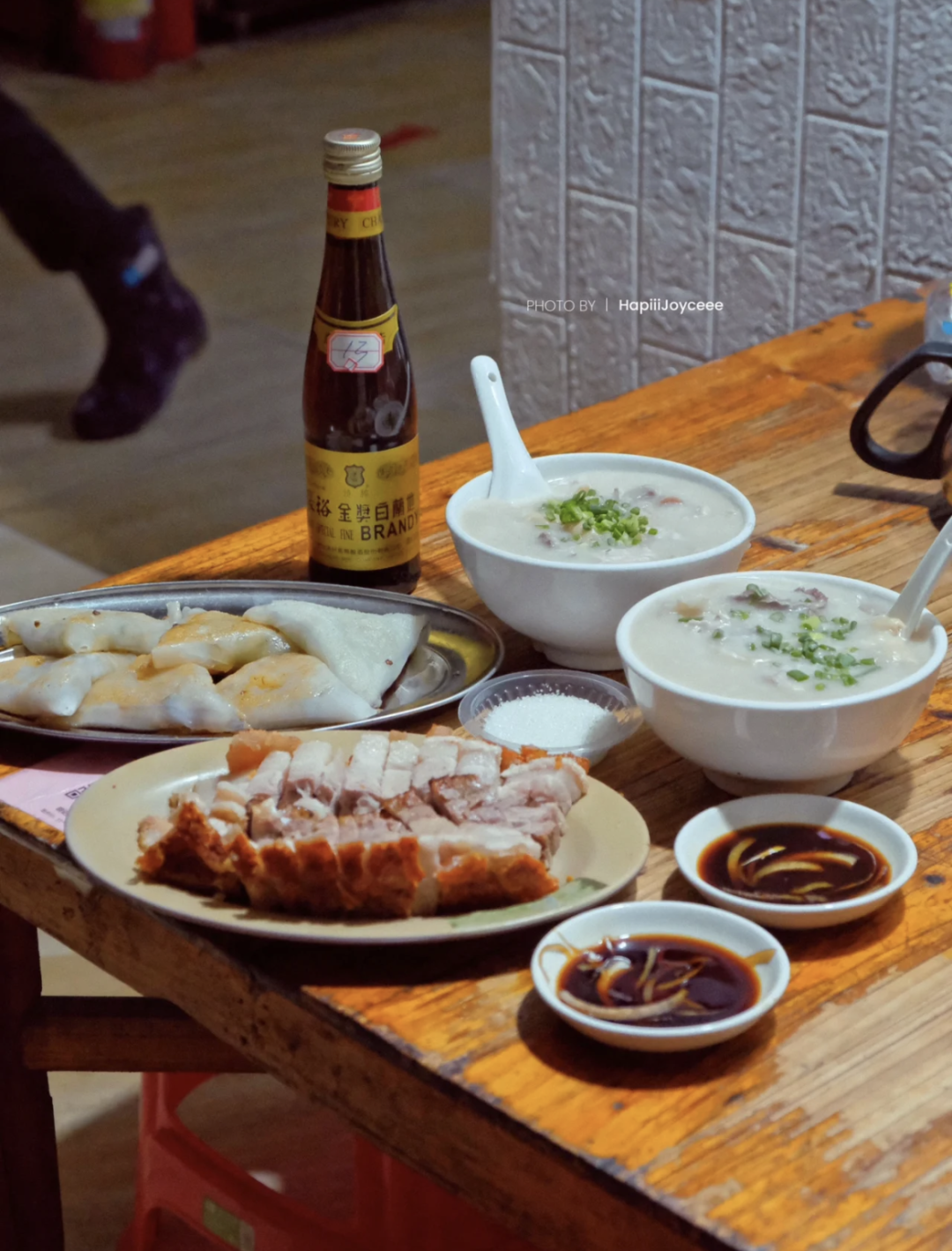因烧猪而留下的内脏,清远人把它用来熬粥,相传这就是洲心大粥的由来,米粒间饱含浓厚的肉香,每一勺都不落空。