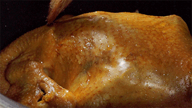 从宋代一路火过来的清远鸡,起初曾是粤北山区客家民系世代选育的斗鸡王,骁勇好战,所以也养得一副好身体——骨骼身细,毛色鲜亮,没有多余脂肪。