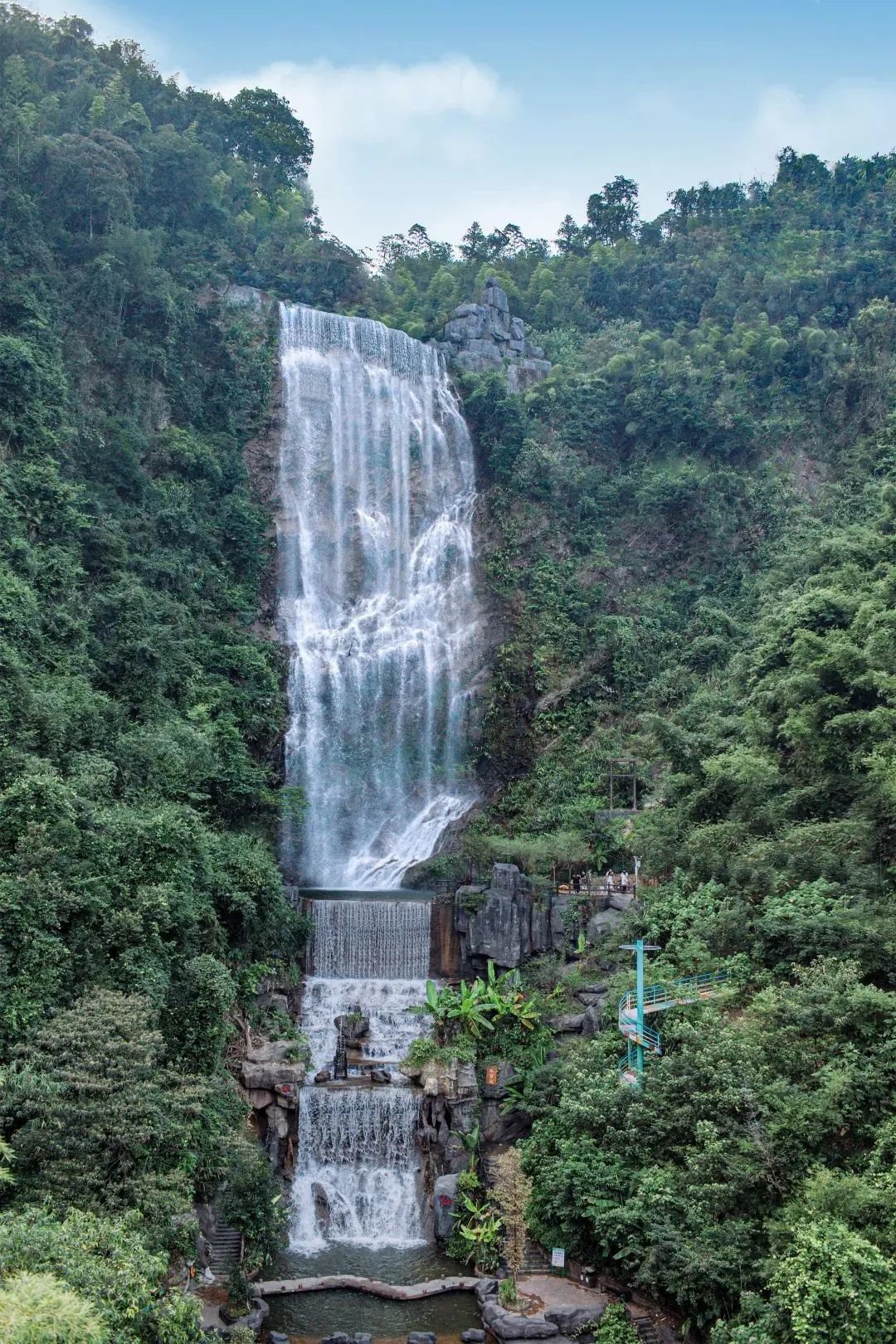 山高林密、古木参天的佛冈观音山,则是更高阶的溯溪去处,一到夏日,这里便会成为户外爱好者聚集地。溪流峡谷交错分布,随处可见大大小小的瀑布群及碧幽水潭,置身其中,暑气已是消了大半。