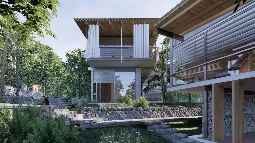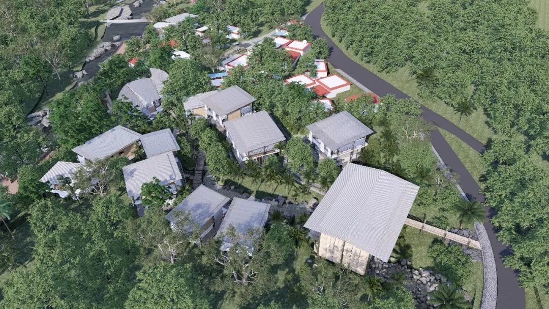 在生态振兴层面,规划布局回归传统黎族村落的形态,以散落式的布局组织各个功能空间,错落的更好地与自然相融,创造出“丛林上的民宿”这种空间意境。