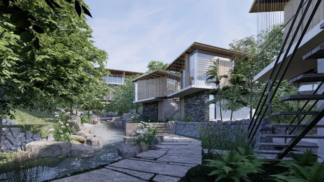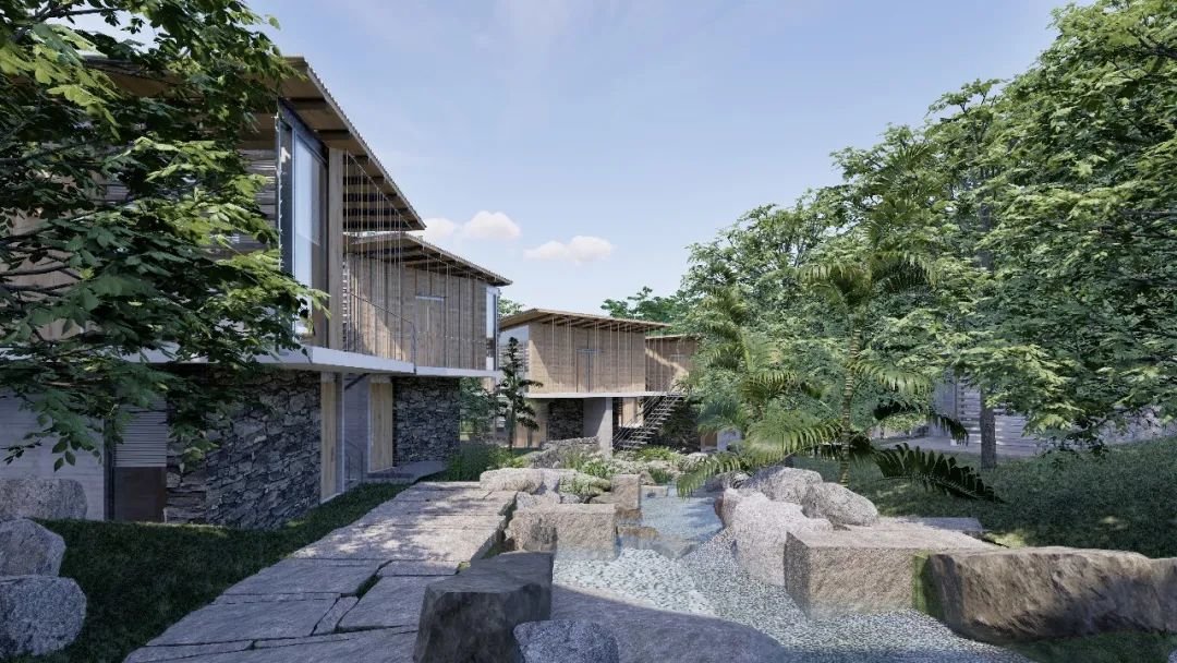 第五位出场的泛式建筑,在大章居民区改造项目的设计中,团队以场地现有的冲沟及溪流作为空间流线来安排布局,让溪流成为核心景观之一,同时也作为排水渠疏导山体水流,防止在降水时山体发生灾害。