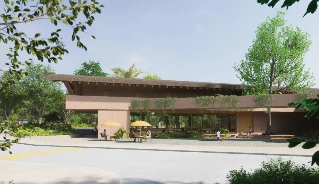 在文化振兴层面,设计将黎族传统工艺中常见的红色融入建筑中,希望以此体现黎族人民在千年辛勤耕作中所沉淀的最深沉、最勤劳的红色。